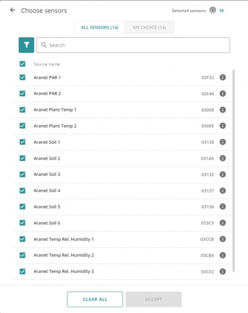 You can choose one or multiple sensors by selecting them in the sensor list: