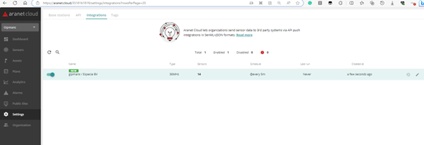 Enable local test – allows enabling of the test mode for the integration. If this box is checked, then the Aranet Cloud platform will not send data out to the external 3rd party system, but integration data files will be prepared and saved locally on the Aranet Cloud workspace. Such files, the user can later open and check from the corresponding Aranet Cloud integration configuration.