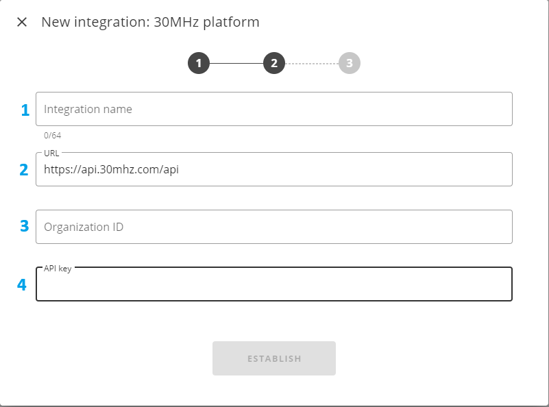 URL – allows specifying the web address for the endpoint of the 30MHz integration