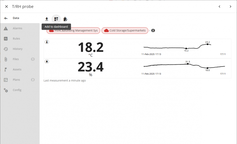 If the Sensor widget for this sensor was not created previously, you can create it in the same pop-up window. Switch to the DATA tab and click the Add to Dashboard button.