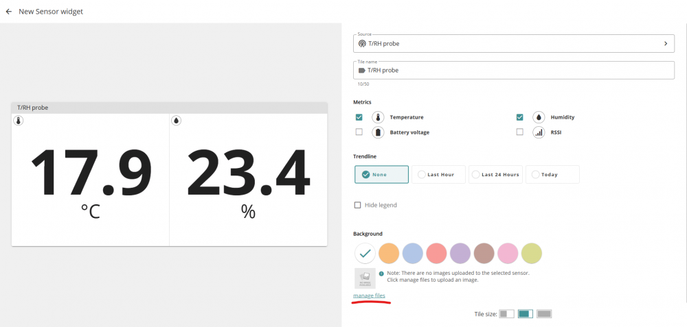 You can add background images to the Sensor widget and Horizontal Sensor widget tiles. Currently, bmp, jpeg, jpg, png, svg, and tiff image formats can be used.