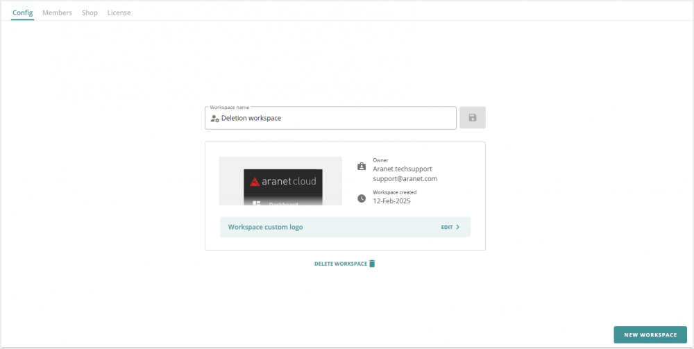 Aranet Cloud workspace deletion can be initiated either by the User or by Administrator.